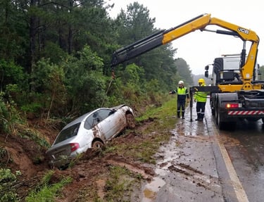 Caminhões, carros, carretas tombados, acidentados, fora da pista ou em local de difícil acesso.